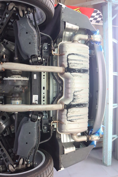リアの大きなサイレンサーをデリートして