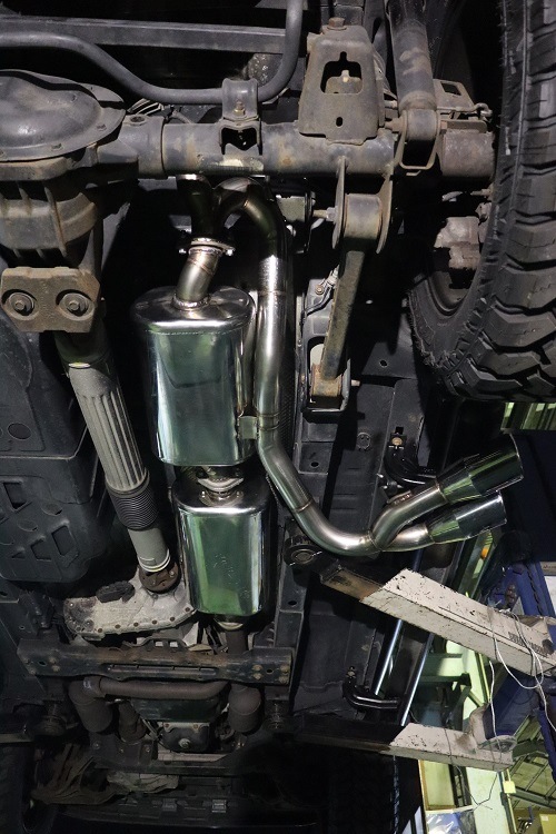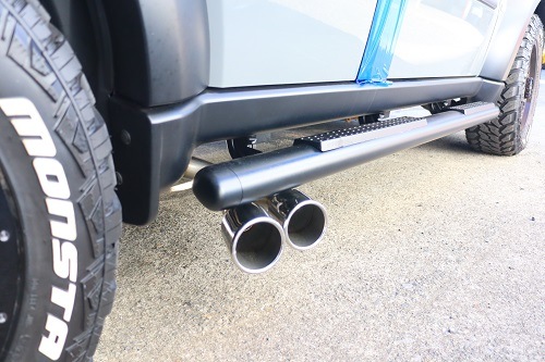 リアタイヤ前 サイド片側2本出しマフラーの