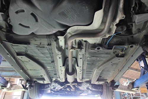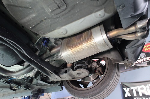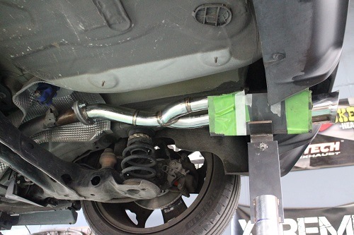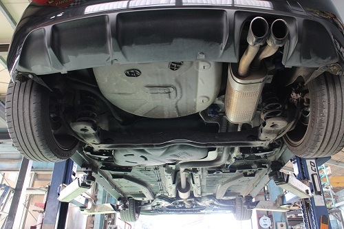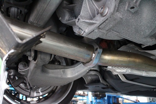ワンオフマフラーはリアで切断し、