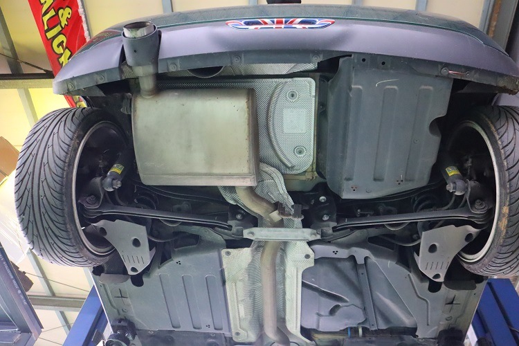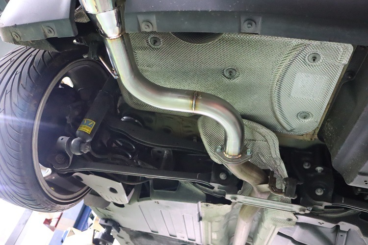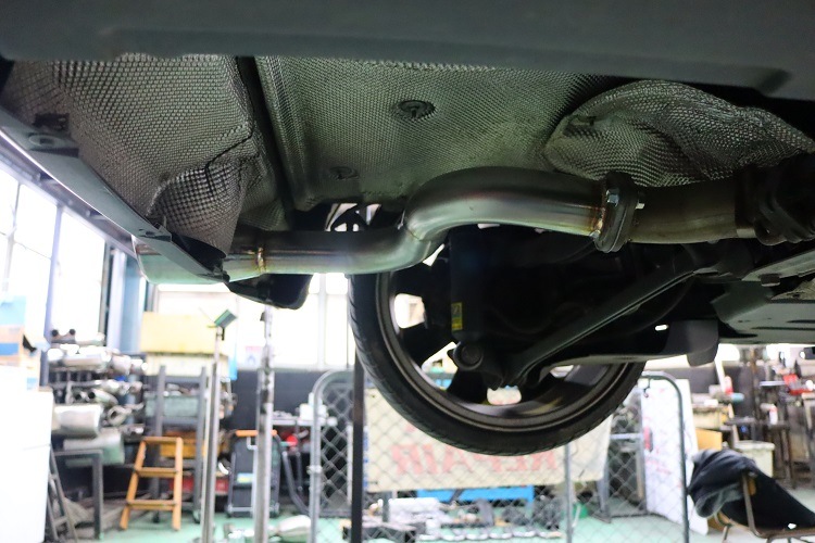 リアサイレンサーの前方で切断し