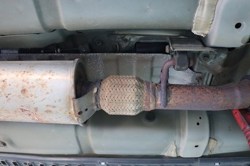 純正マフラーのフランジ加工部分と