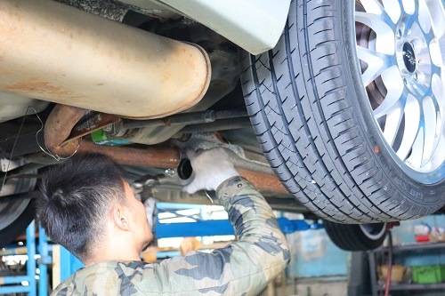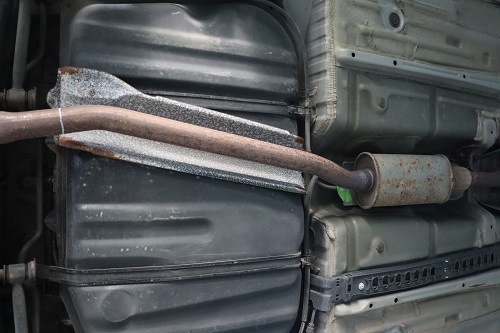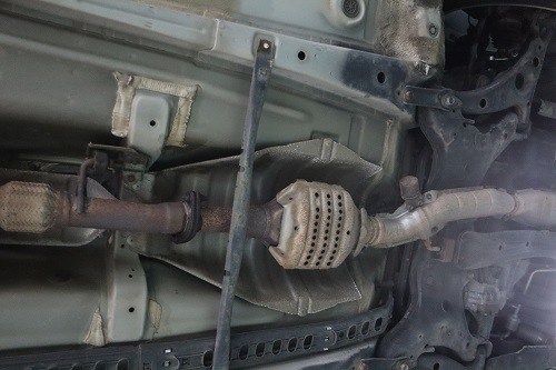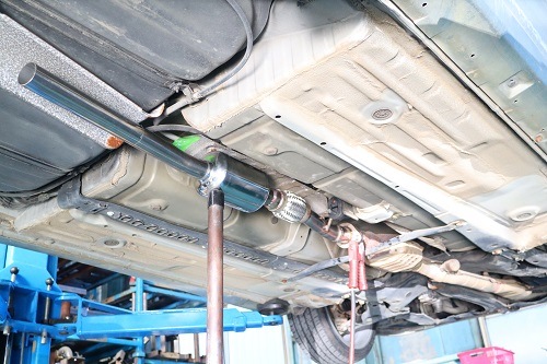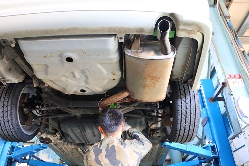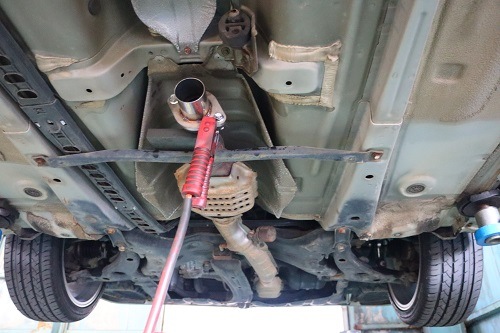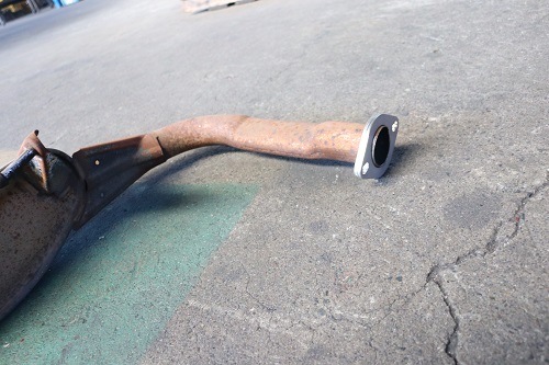 純正マフラーを切断し、